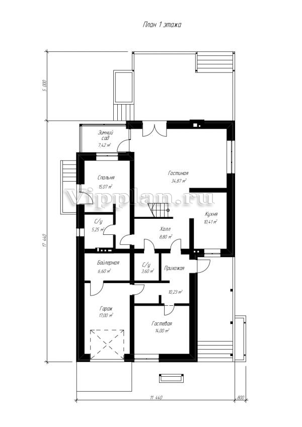 | Размеры дома: | 17.44м×11.44м |