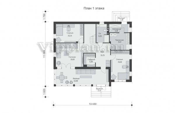 | Размеры дома: | 13.43м×11.08м |